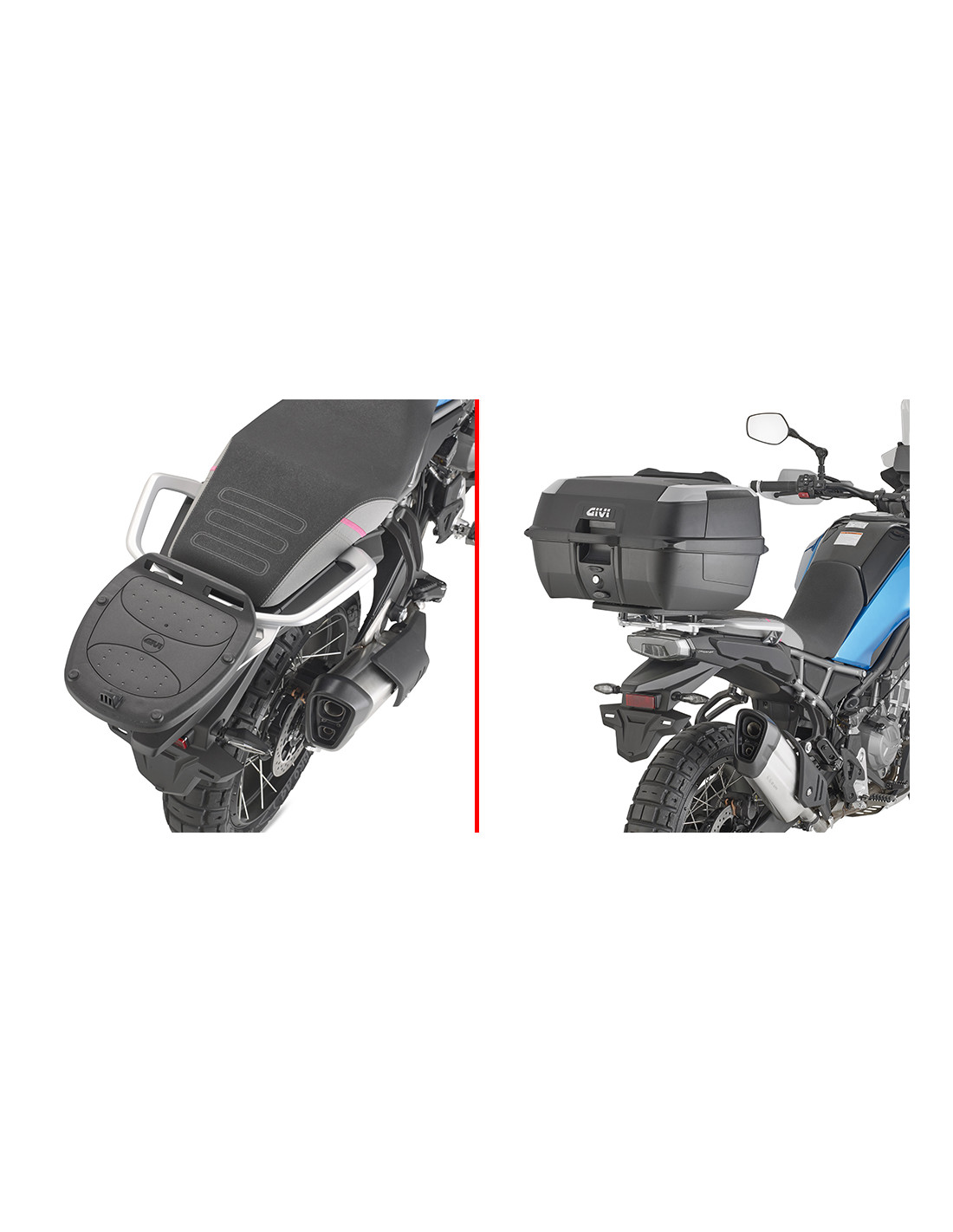 Givi vous présente le SR9226 la voie du rangement structuré sur la CFMoto 450 MT à partir de 2024, un support arrière spécifique pour top case en acier conçu pour s'installer en remplacement du porte-bagage en plastique ou des poignées d'origine de ce trail middleweight bicylindre parallèle de 450 cm³, sans perçage ni modification irréversible du cadre.