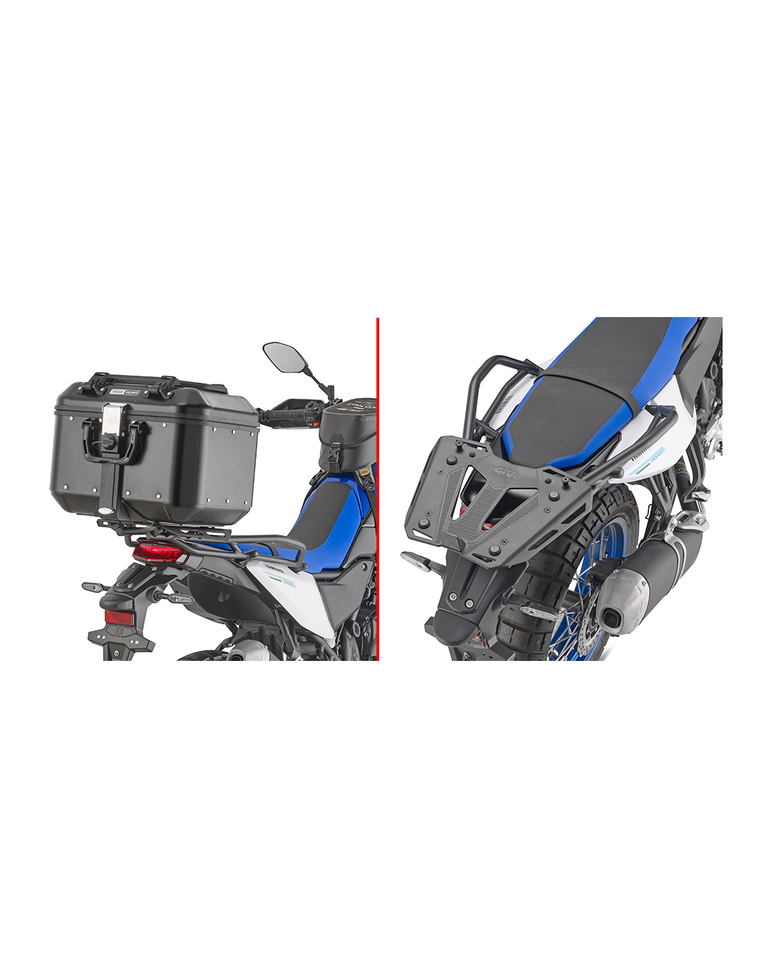 Givi vous montre le SR2174, un support spécifique pour top case conçu pour la Yamaha Ténéré 700 et la Ténéré 700 Rally à partir de 2025, offrant une solution de fixation sur une moto dépourvue de support d'origine pour transporter un top case à fixation Monokey ou Monolock.