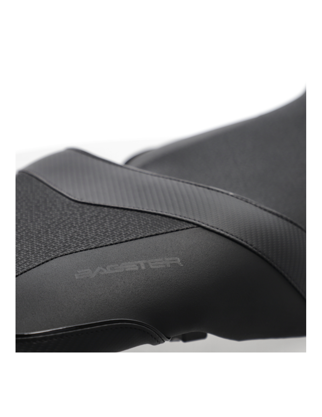 - Bandes latérales en textile noir mat moderne pour un maintien latéral optimal en virage, combiné à une assise plus large que l'origine.