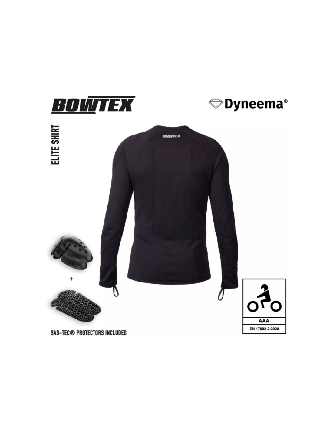 Bowtex vous suggère l’Elite Shirt Homme V2, une sous-veste moto qui privilégie la protection près du corps, la liberté de mouvement et la facilité de superposition avec votre équipement habituel. Certifiée CE AAA selon la norme EN17092-2:2020, elle s’appuie sur une structure intégrale en tissu Dyneema®, des protections SAS-TEC niveau 2 livrées d’origine aux épaules et aux coudes, ainsi qu’un dos plus long grâce à une coupe asymétrique pensée pour mieux couvrir en position de conduite.