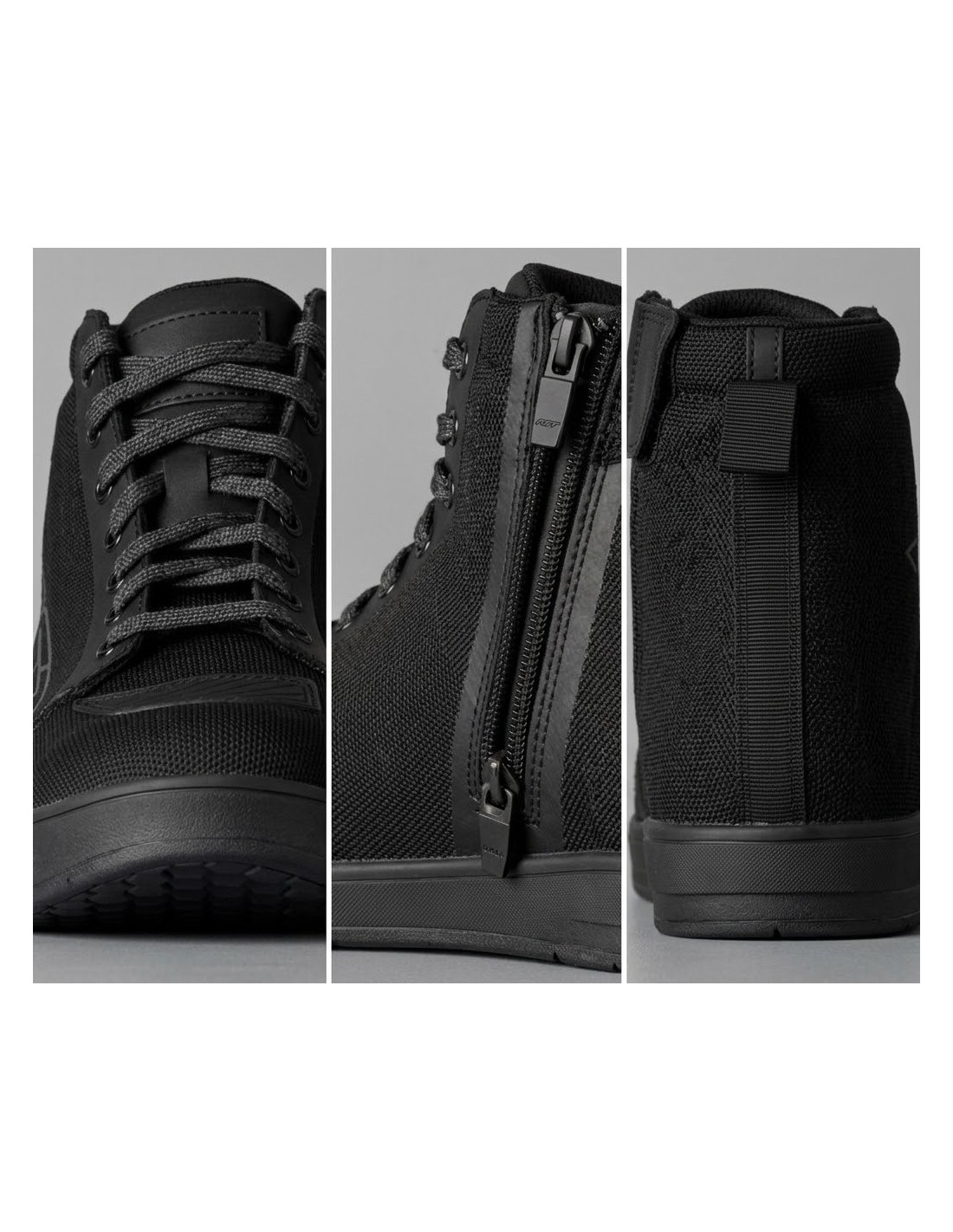 Grâce à leur tige en mailles tricotées hautement respirantes, ces chaussures moto été assurent un flux d’air optimal en ville, même dans les embouteillages. Renforts TPU au talon et aux malléoles, pad sélecteur, semelle intermédiaire anti-torsion et fermeture mixte zip avec lacets : tout est pensé pour rouler protégé sans renoncer au confort.